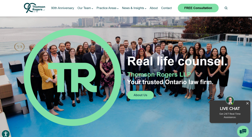 Key Takeaways: The Thomson Rogers website demonstrates that combining tradition with modern web practices can result in a highly effective law firm website. Key lessons include the importance of showcasing credibility through concrete accolades and history. The clients visiting the site are immediately reassured by the firm’s 90-year legacy and ongoing recognition. At the same time, the site’s modern features (fresh content feeds, intuitive navigation, mobile optimization) show that even the most established firms must stay current to meet user expectations. Another takeaway is the value of comprehensive content organization: by structuring a vast amount of information in a user-friendly way, Thomson Rogers makes expertise accessible and fosters trust. Ultimately, TR Law’s site teaches that a large law firm can be informative, approachable, and conversion-focused all at once and it’s about thoughtful design, rich content, and clear calls-to-action working in harmony.