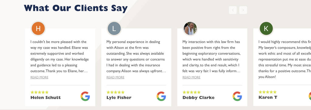 Here’s an example of an estate lawyer embedding YouTube videos and case studies on their website to share testimonials: